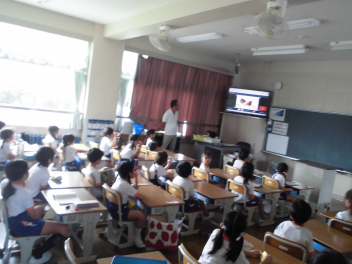 校長先生は、子供たちもよく知っている『「きのこ型のおかし」と「たけのこ型のおかし」、どっちが好き?』という話題をもとに疑問に思ったことを調べ、その結果や考えたことを話してくれました。