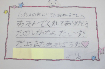 遊んだ後6年のおにいさん、おねえさんにお礼の手紙を書きました。