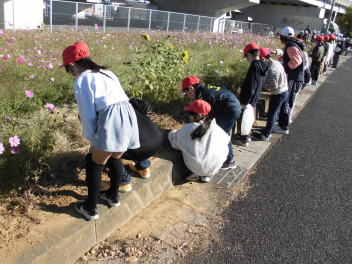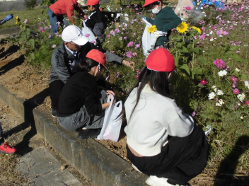 今日20日(木)は、中野町を考える会の方々の御指導のもと、3年生となかよし2組さんがコスモス摘みをしました。