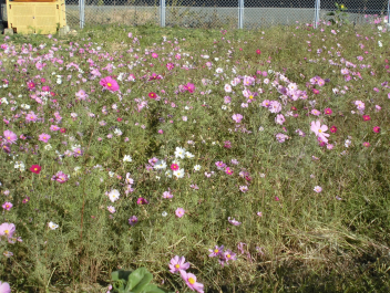 3年生の子供たちが9月に種まきをしたコスモスがきれいに咲きました。