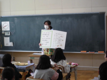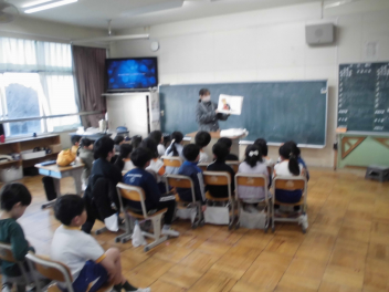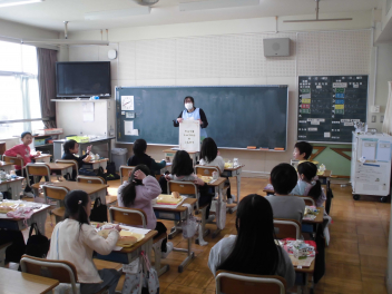• 本日も与進小の栄養教諭の立石先生に食に関する指導をしていただきました。