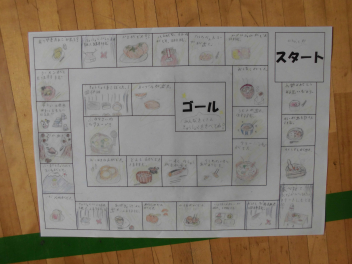 給食に出る献立をつかったすごろくとビンゴゲームをやりました。