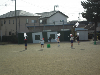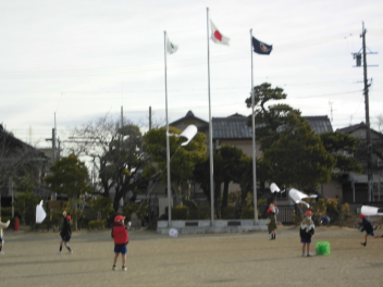 • 本日(1/21)に1年生は生活科で作った凧をあげました。