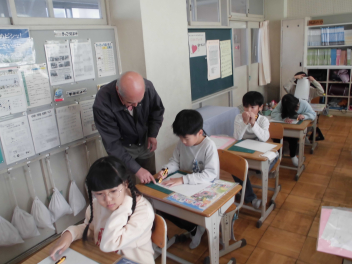 子供たちが、けがなく、正しくカッターナイフを使うことができるように、図工ボランティアの方が来校してくださっています。