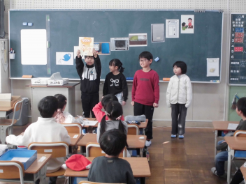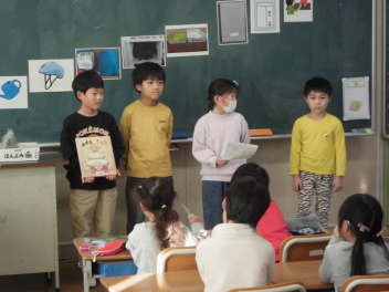 学習したことをもとにグループごとに本を選び、紹介文を作って1年生に紹介しました。