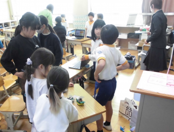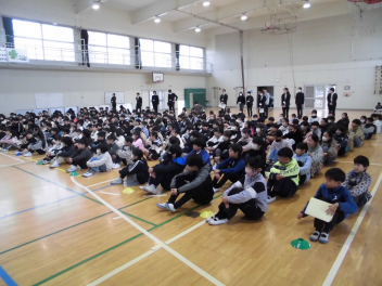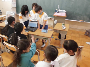 休み時間終わりに運動場から帰ってくる子に運動委員会の人が緑のTTYカードを配っています