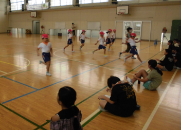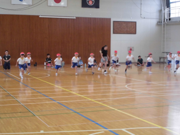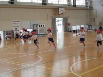 音楽に合わせて走り出すのが難しかったようですがみんな一生懸命に走りました。