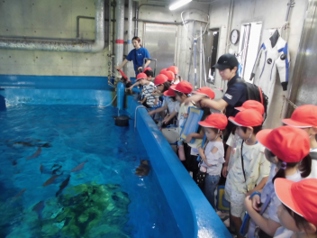 バックヤード見学では巨大水槽を上からのぞかせてもらいました。