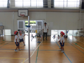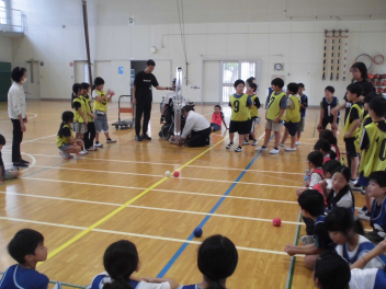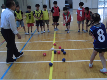 • 1年の体育科は「ボール投げゲーム」をやっています。
