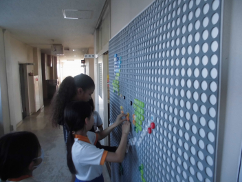 各教室に子供自身がやりたいことを書いて掲示しています