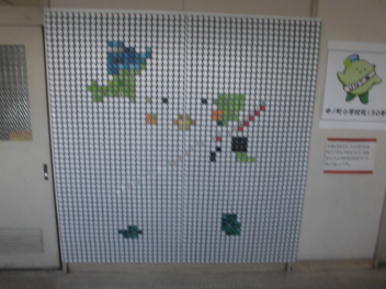 交換したペットボトルキャップをモザイクアートにしていきます。