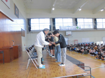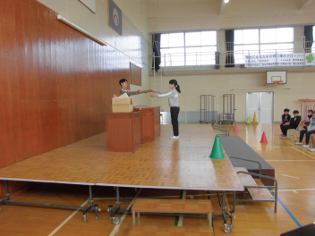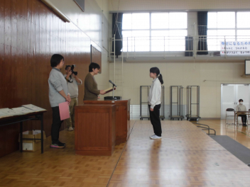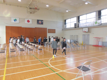 体育館にステージを設置し、本格的に卒業式の練習が始まりました。