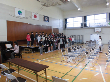 入退場、ステージ上で卒業証書授与、旅立ちの言葉の中の歌の練習などを行いました。