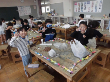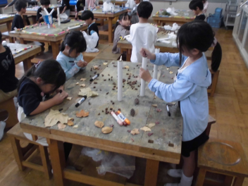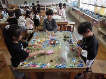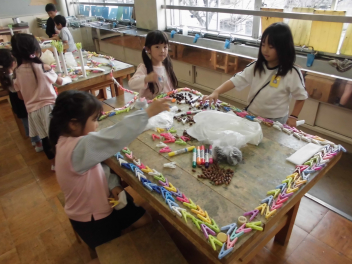 • 1年の図工は「ならべてならべて」の学習をやっています。