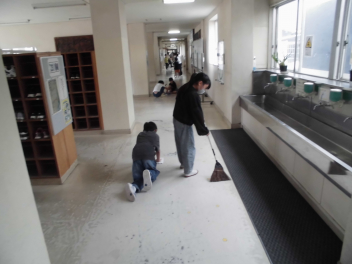 げた箱・昇降口・ろう下が分担の人もそうじのやり方に慣れ、黙ってそうじをしていました。