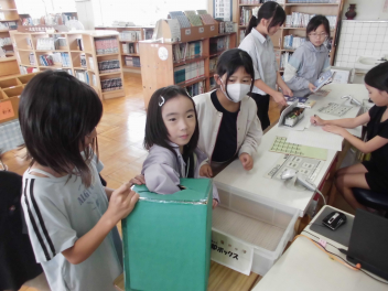 学校では、読書郵便、お昼の放送で多読者の紹介、図書委員による1~4年への読み聞かせ等様々な取り組みをしています。