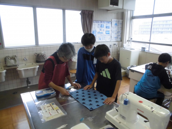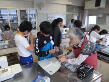 • 22日(水)の2・3時間目に5年の家庭科でミシンボランティアさんが来校し、子供たちの作業の補助をしてくれました。