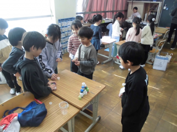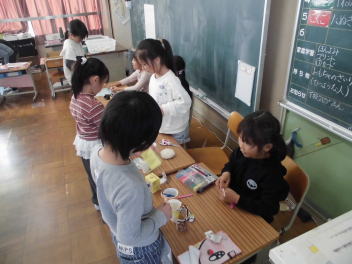• 1年生の生活科「たのしいあきいっぱい」の学習で、おもちゃ屋さんを作りました。