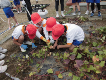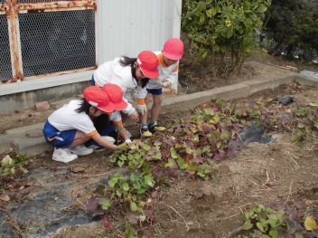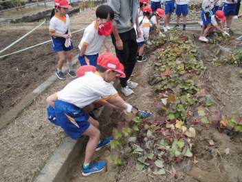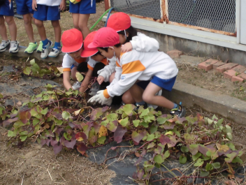 大きいサツマイモは取れませんでしたが、みんなで協力していも掘りをしました。