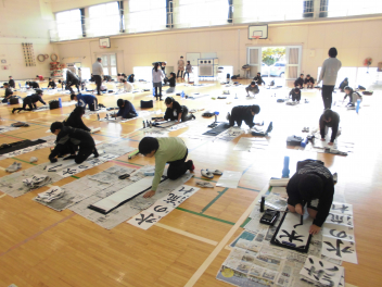 • 12月4日(木)に3・4年生の書き初めがあり、書写ボランティアの方が来校してくださいました。