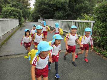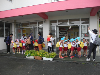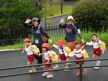 幼稚園に着いたよ。和田幼稚園のお友達、またねー。