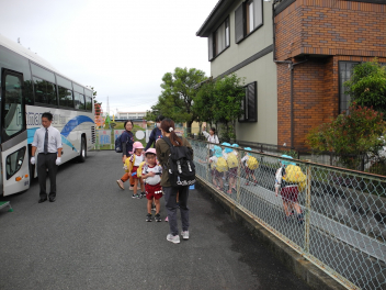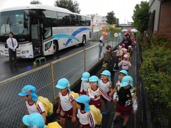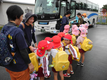 年長児が年少児をバスまで連れて行ってくれたよ。