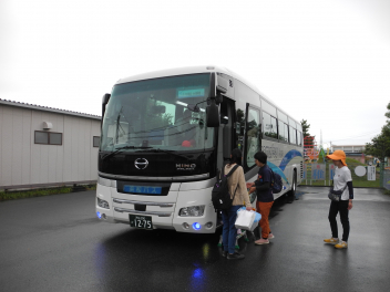 うわー、大きなバスが来てるよ。和田幼稚園のお友達だ。