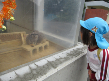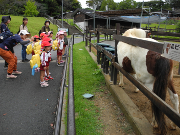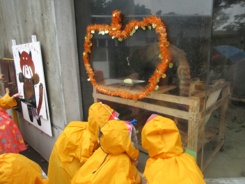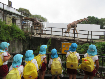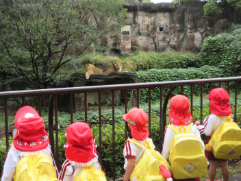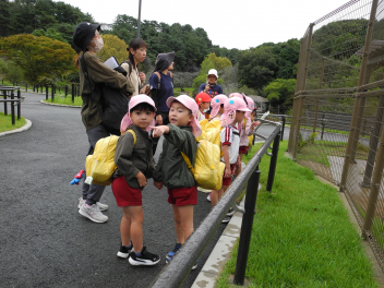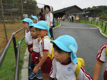 年中児と年少児はいっしょに動物園探検。