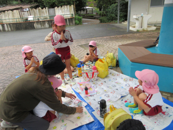 年少児は絵具でいろいろな絵を書いてみたよ。