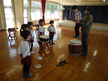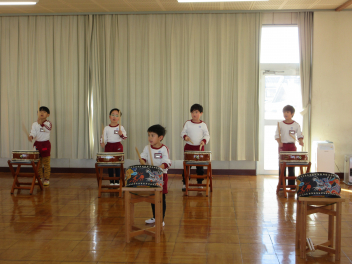 和太鼓を年中組に引き継ぐよ。