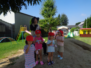 • 先週末、河川氾濫を想定した避難訓練を行いました。日頃から津波や河川氾濫の際にはできるだけ高いところに避難するのがよいことを園児たちに話してきました。園児たちは私語をすることもなく、落ち着いて小学校4階まで移動できました。その後、保護者の方がお迎えに来てくれ、ほっとした様子でした。園児も教職員も緊張感をもってねらいに沿った活動ができました。
