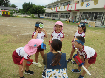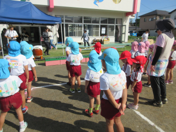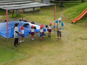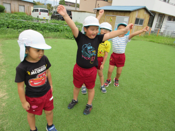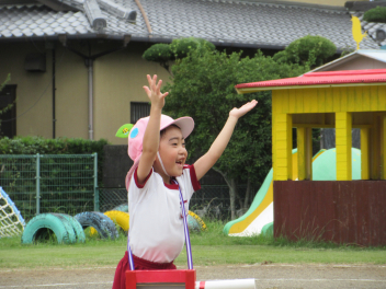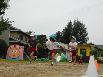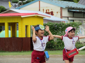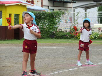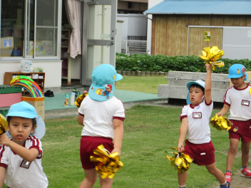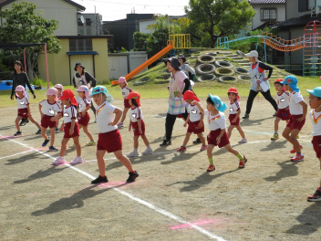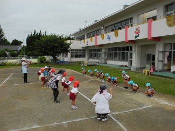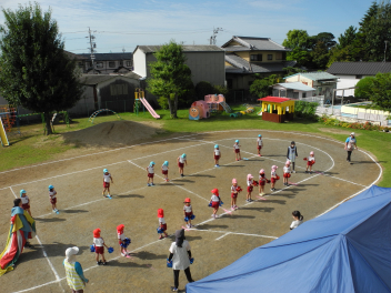 • 昨日は運動会の総練習をしました。PTAの方々にご協力いただき、運動会の動きを確認していただきました。園児たちも明るくのびのび、日ごろの練習の成果を発揮しました。また、本番に向けてもっとがんばるところがみつかり、これからの練習にも熱が入りそうです。