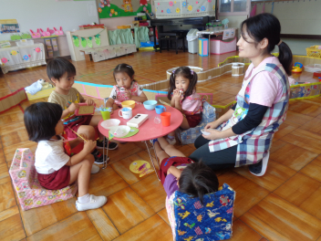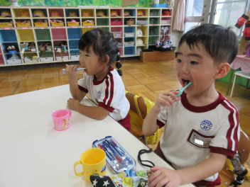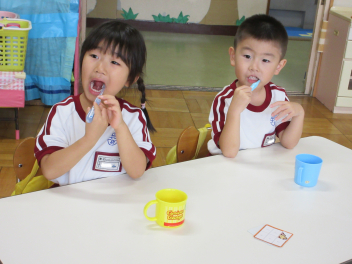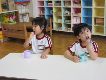 年中組は歯磨きの練習をしています。