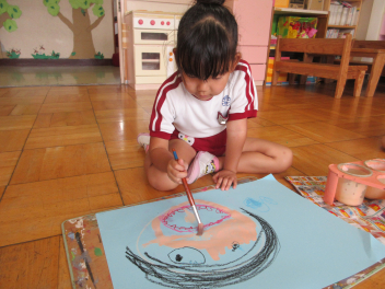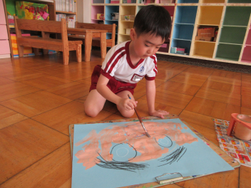 お顔も絵の具で塗ってみるよ。