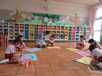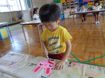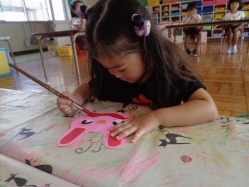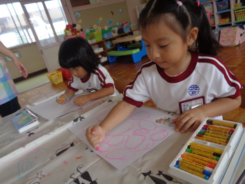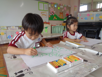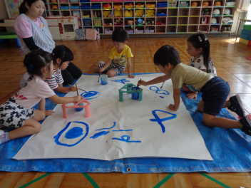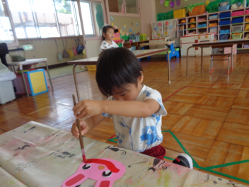 年少児は絵具でいろいろな絵を書いてみたよ。