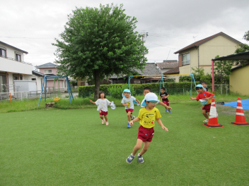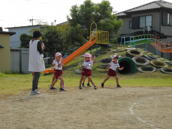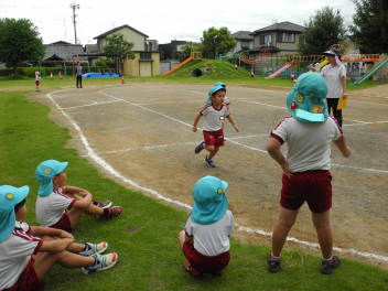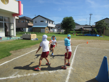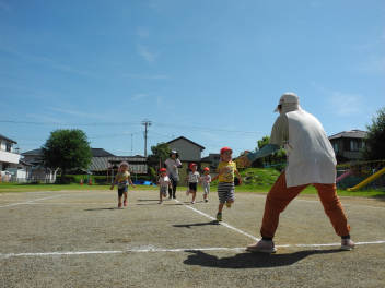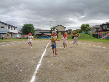 年長児を真似て年中児もかけっこしたよ。はやいでしょ?