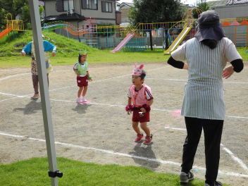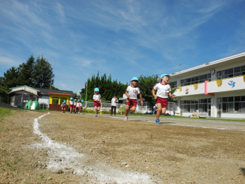 最後に年少児も走ったよ。転んでも泣かないよ。