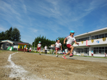 年長児はかけっこが大好きになったよ。がんばれー!