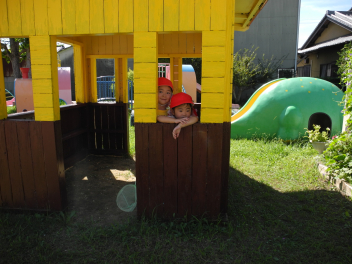 幼稚園に着いたよ。和田幼稚園のお友達、またねー。