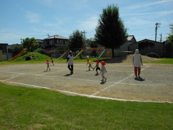 みんなで鬼ごっこ。先生おおかみが来たぞー。