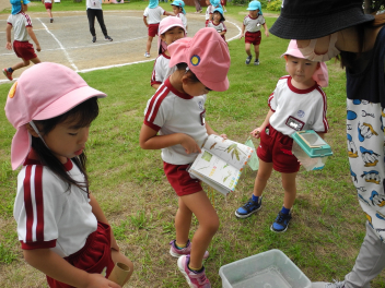 年長児もバッタやクモ、いろいろな生き物を捕まえたよ。