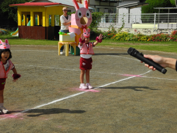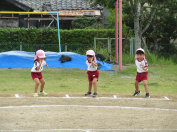 まずはかけっこ。年少児が走るよ。
