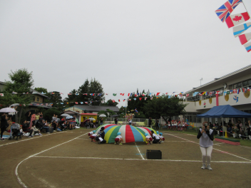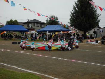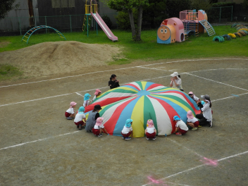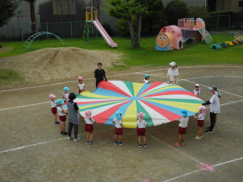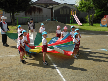 年長児といっしょにパラバルーンやったよ。うれしかったよ。