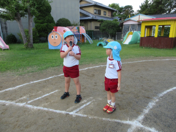 • 今週は、年少組は屋外で虫取りをしたり、シャボン玉遊びをしたりしました。年中組は、歯磨きにも慣れてきて、じょうずに磨けるようになってきました。年長児はかけっこやダンス、パラバルーンの練習に気合いを入れて組むことができてきました。運動会に向けて少しずつ意欲も高まり、体を動かすことが楽しくなってきたようです。