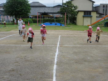 年中児のかけっこ。ずいぶん速くなったよ。