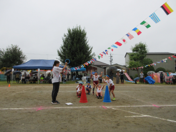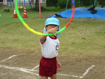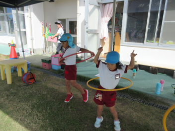 年長児はフラフープの練習、がんばってるよ。