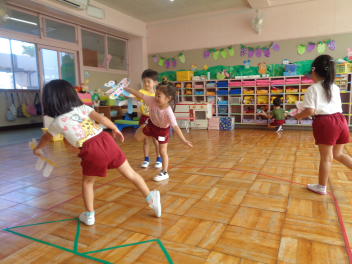 年中児は「きょうりゅうろっく」じょうずになったよ。