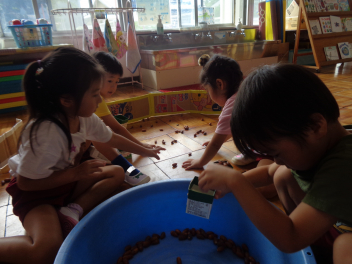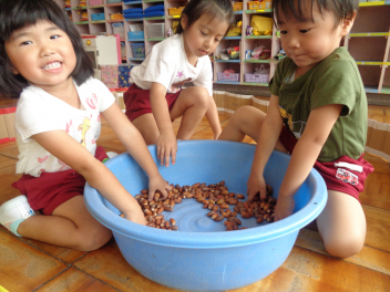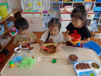 年少児はドングリで遊んだよ。