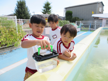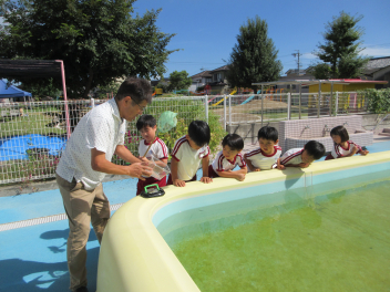園長先生がプールで変な生き物みつけたよ。