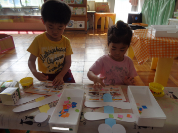 見て見て、トンボの羽根がきれいにできたよ。